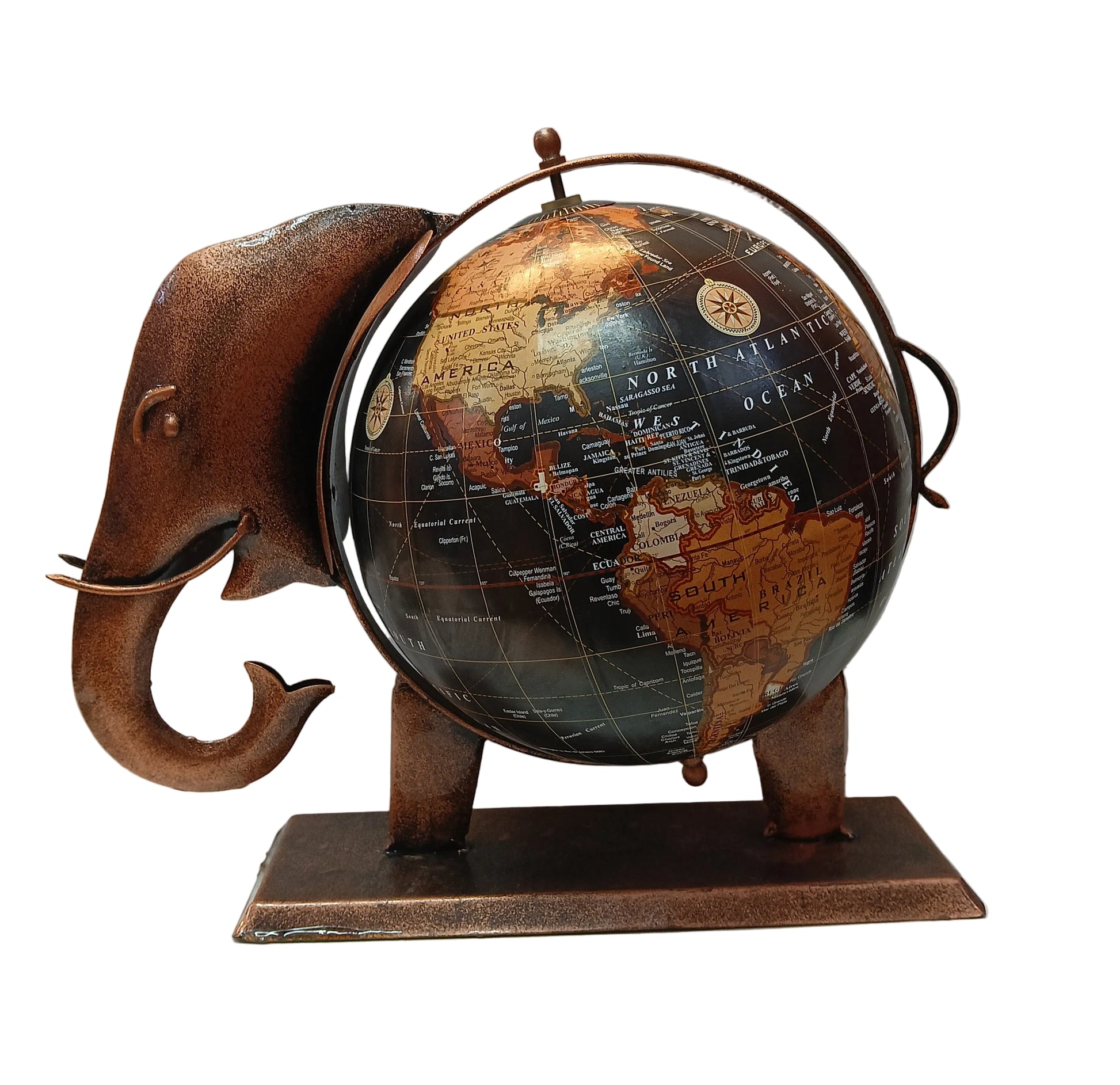 M-1683 Elephant Metal Globe (11.5x13.5inch)